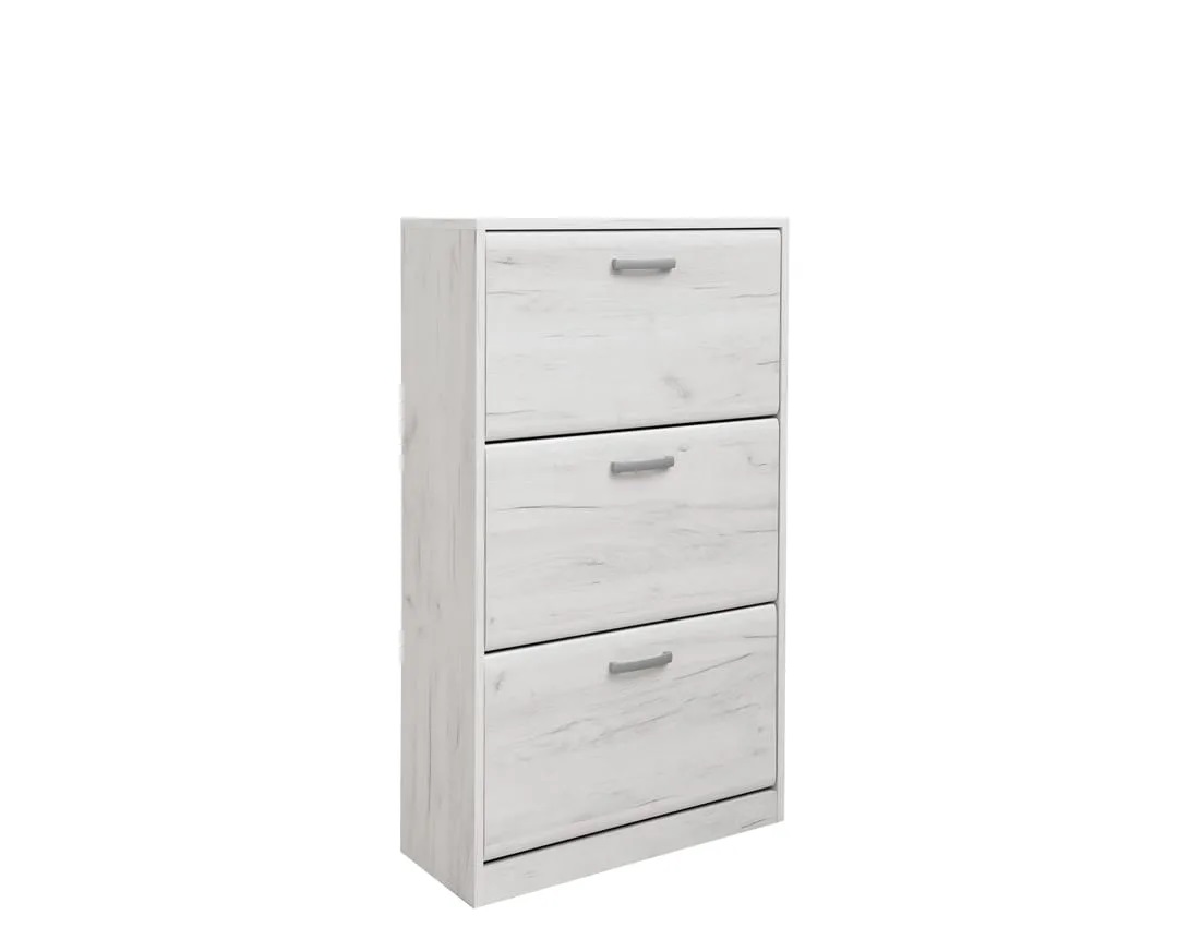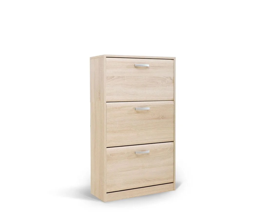 Cipelari Odisej 3V daju moderan zaoktet u skladištenju obuće. Cipelari Odisej 3V izrađuju se od kvalitetnog oplemenjenog Univera debljine 18mm i sadrže tri fioke. Fioke cipelara poseduju metalne ručke i otvaraju se po Kip sistemu. Skladan izgled, soft obrada frontova fioka i dimenzije cipelara uklopiće se uz svaki dodatni element vašeg predsoblja, a može se koristiti i kao zaseban deo.