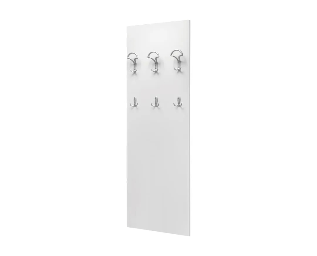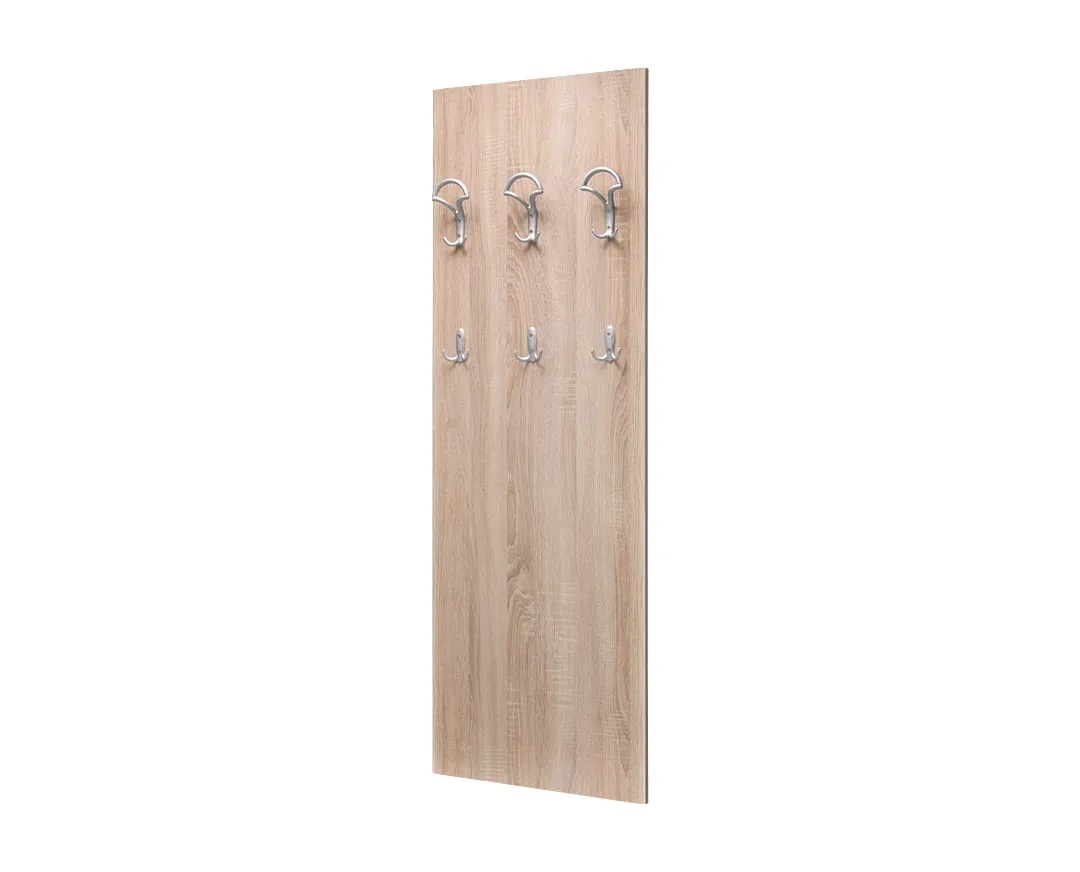 Predsoblje Čiviluk Matis je deo predsoblja u obliku table sa 6 pravilno raspoređenih čiviluka za garderobu, soft obrade ivica, izrađen od oplemenjenog Univera debljine 18mm. Idealano rešenje za sve prostorije u kojima je potreban minimalan prostor za odlaganje garderobe. Zahvaljujući dizajnu čiviluk Matis možu se montirati na gotovo svako mesto vašeg stana, a praktična su i za kancelarijsku upotrebu i ugostiteljske objekte.