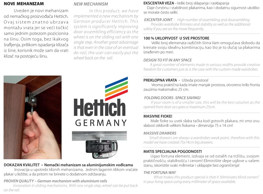 Garderoberi Fortuna soft F1, kolekcija najprodavanijih ormara savremenog dizajna i elegantne linije. Garderober Fortuna F1 može se primenjavati kako u vašem domu tako i u kancelariji za odlaganje dokumenata i fascikli, prvenstveno zbog svoje širine od svega 50cm i velikih polica. Svi ormari kolekcije FORTUNA izrađeni su od oplemenjene iverice 18mm sa soft obradom ivica. Rade se u 5 dezena, a unutrašnjost je bele boje.