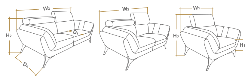 W1=128cm W2=176cm W3=222cm<br>H1=46cm H2=84cm H3=104cm<br>D1=55cm D2=96cm