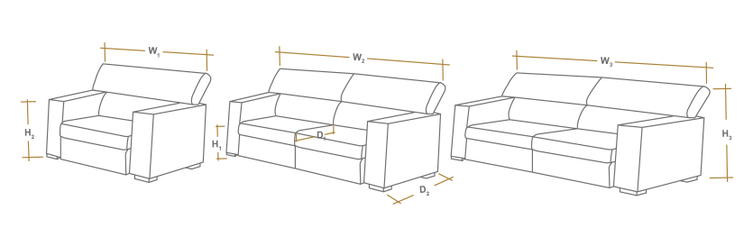 W1=110cm (kraća) W1=130cm (duža) W2=170cm W3=210cm<br>H1=43cm H2=80cm H3=100cm<br>D1=65cm D2=105cm