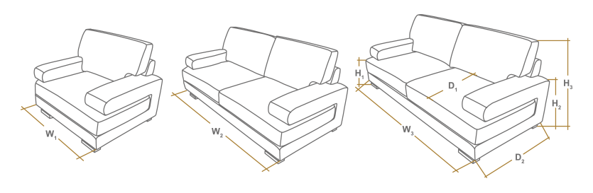 W1=114cm W2=185cm W3=214cm<br>H1=41cm H2=53cm H3=87cm<br>D1=59cm D2=98cm