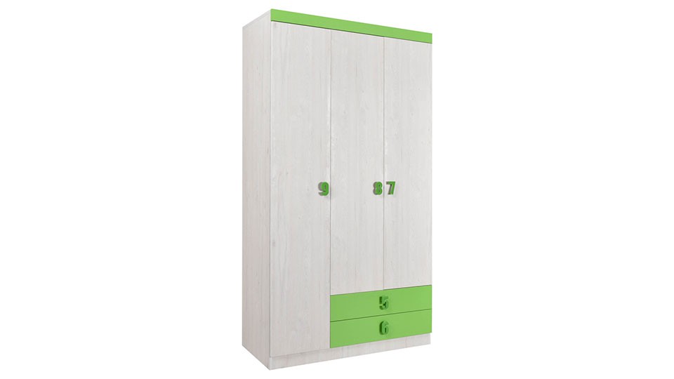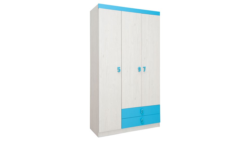 Numero ormar O3V2F je najveći ormar iz Numero kolekcije. Izrađen je od oplemenjenog univera debljine 18mm. Ormar se sastoji od velikog skladišnog dela u kojem se nalazi garderober šipka i na dnu 2 fioke predviđene je na odlaganje vaše odeće. Levo se nalazi 5 polica. Trokrilni Numero Ormar O3V2F iz dečijeg programa Numero je u potpunosti prilagođen za odlaganje vaše garderobe.