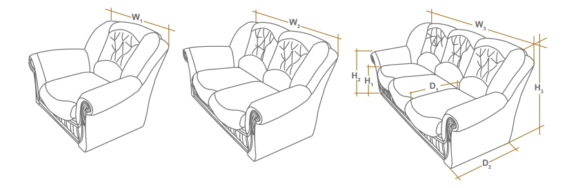 W1=97cm W2=149cm W3=203cm<br>H1=45cm H2=62cm H3=92cm<br>D1=55cm D2=98cm