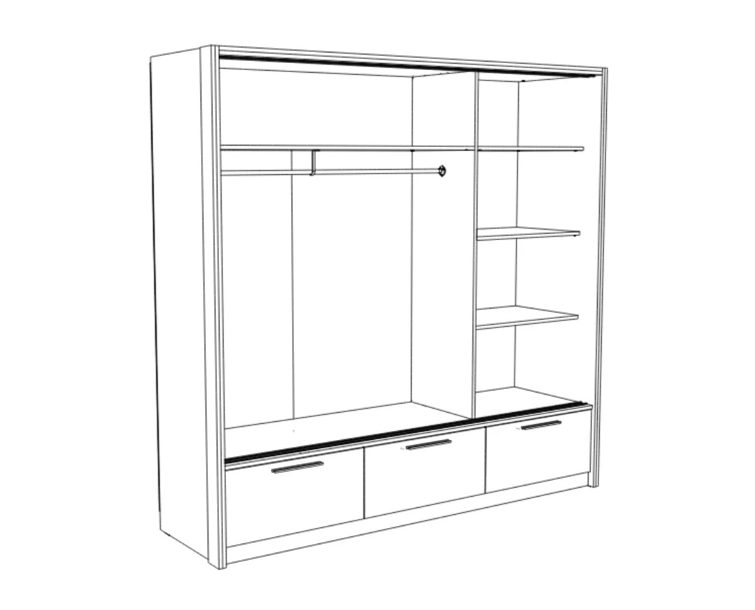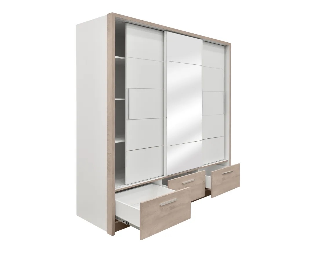 Plakar KALIOPA pravo je rešenje za postizanje enterijerske praktičnosti i maksimalne iskorišćenosti raspoloživog prostora. Plakar KALIOPA izrađen je od univera debljine 18mm i svojim dizajnom prilagođen je odlaganju garderobe. Dodatne fioke omogućavaju bolju iskorišćenost skladišnog prostora.