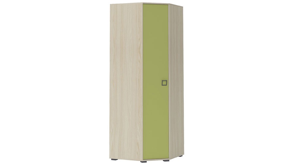 Ugaoni plakar sa jednim krilom. Korpus elementa izradjen je od univera, debljine 18mm, u beloj boji sa teksturom drveta ili u drvo dekorima Jasen i Bukva, prema želji kupca. Pri izboru boje fronta, koji je takodje od univera, možete izabrati jednu od pet boja iz naše palete: Pesak, Kivi, Pink, Denim ili belu sa teksturom drveta. Uz pet polica i tri garderobne šipke, ovaj garderober će Vas zadiviti raspoloživim prostorom za uredno odlaganje garderobe. Mogućnost fine nivelacije preko podesivih nožica koje su standardni deo opreme plakara. Korpus elementa kantovan je i sa zadnje strane. Zaobljene ivice, kantovane ABS kant trakom debljine 3mm, napravljenom od ekoloških materijala, doprineće bezbednosti Vaše dece. Kompletan okov za nameštaj i montažna šema učiniće sklapanje ovog elementa veoma jednostavnim. Element koji se svojim kvalitetom i funkcionalnošću u potpunosti izdvaja od ostalih na tržištu.