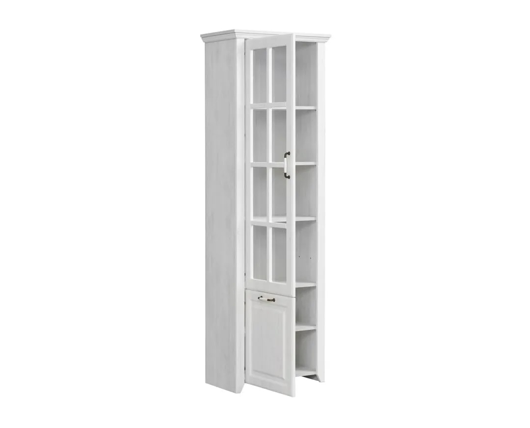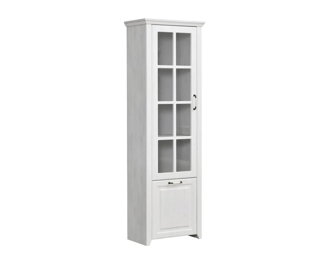 RUSTIK – Staklena vitrina – visoka, modernog i praktičnog dizajna, uklopiće se u svaku prostoriju. Pored vašeg doma, možete je koristiti u kancelariji ili drugim radnim prostorijama. Zauzima veoma malo prostora, pa je njena prednost maksimalna iskorišćenost uz elegantan dizajn. Stakleni deo se nalazi u ramu od medijapana.