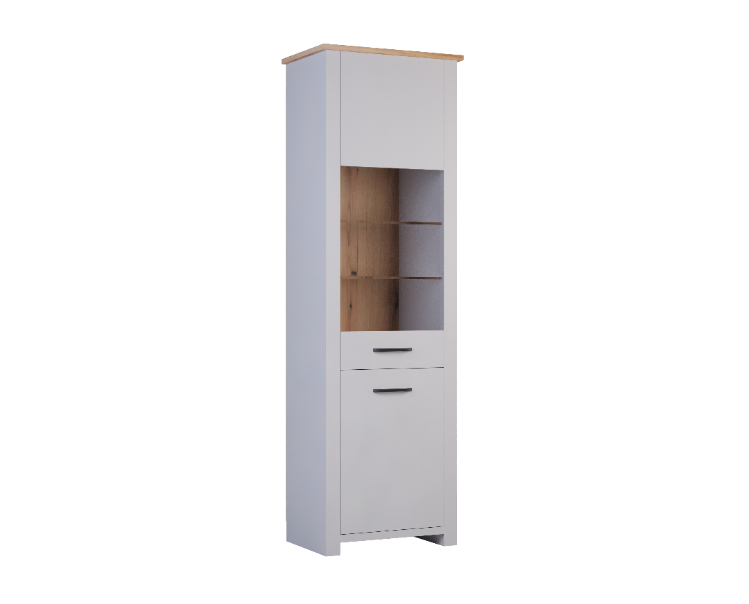 Dnevna soba Sienna – Visoka vitrina modernog i praktičnog dizajna, uklopiće se u svaku prostoriju. Pored vašeg doma, možete je koristiti u kancelariji ili drugim radnim prostorijama. Zauzima veoma malo prostora, pa je njena prednost maksimalna iskorišćenost uz elegantan dizajn.