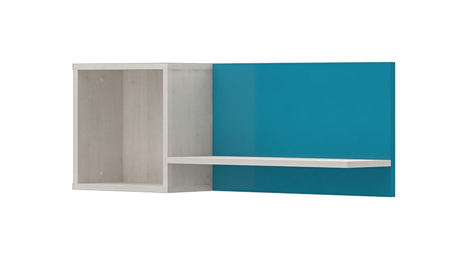 Atraktivna i funkcionalna viseća polica izrađena u kombinaciji univera u drvo dekoru Polarni Bor i medijapana u boji Tirkiz. Opremljena je potrebnim okovom za kacenje.